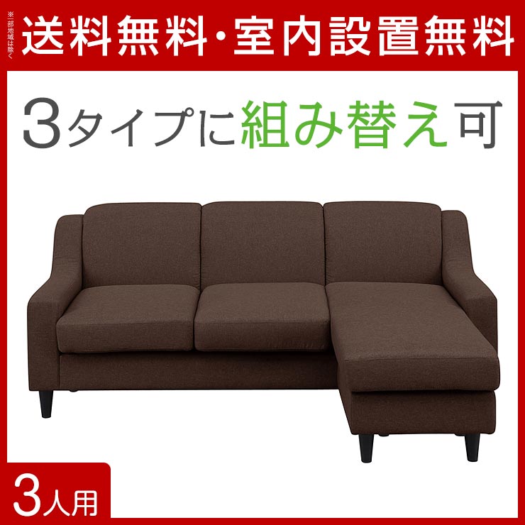 ★送料無料★一部地域以外肌触りのいいファブリック素材!【3WAYカウチソファ/44249グレー】色違いブラウンもご用意しました。メーカー発送の為、代引きは不可です。